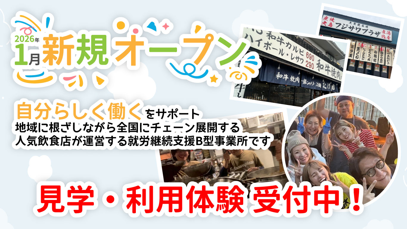 地域トップクラスの人気焼肉店「焼肉たけ田」を運営する株式会社ミナモト 福祉事業部が立ち上げた事業所として、焼肉店のお仕事や軽作業、地域の清掃などを通じて、利用者さん一人ひとりが自分のペースで「働く」力を育てていける場所を目指しています。